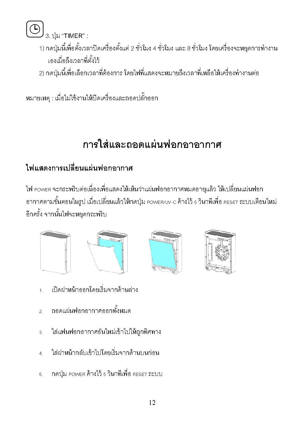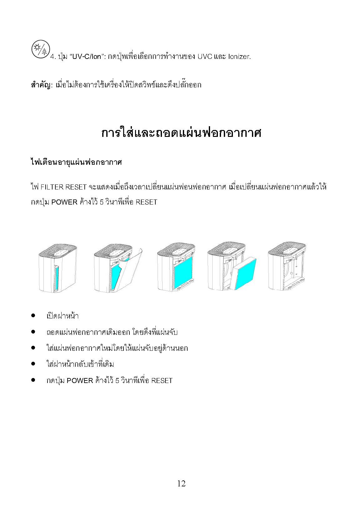 วิธีเปลี่ยนและรีเซ็ตแผ่นฟอกอากาศ รุ่น CF-8000