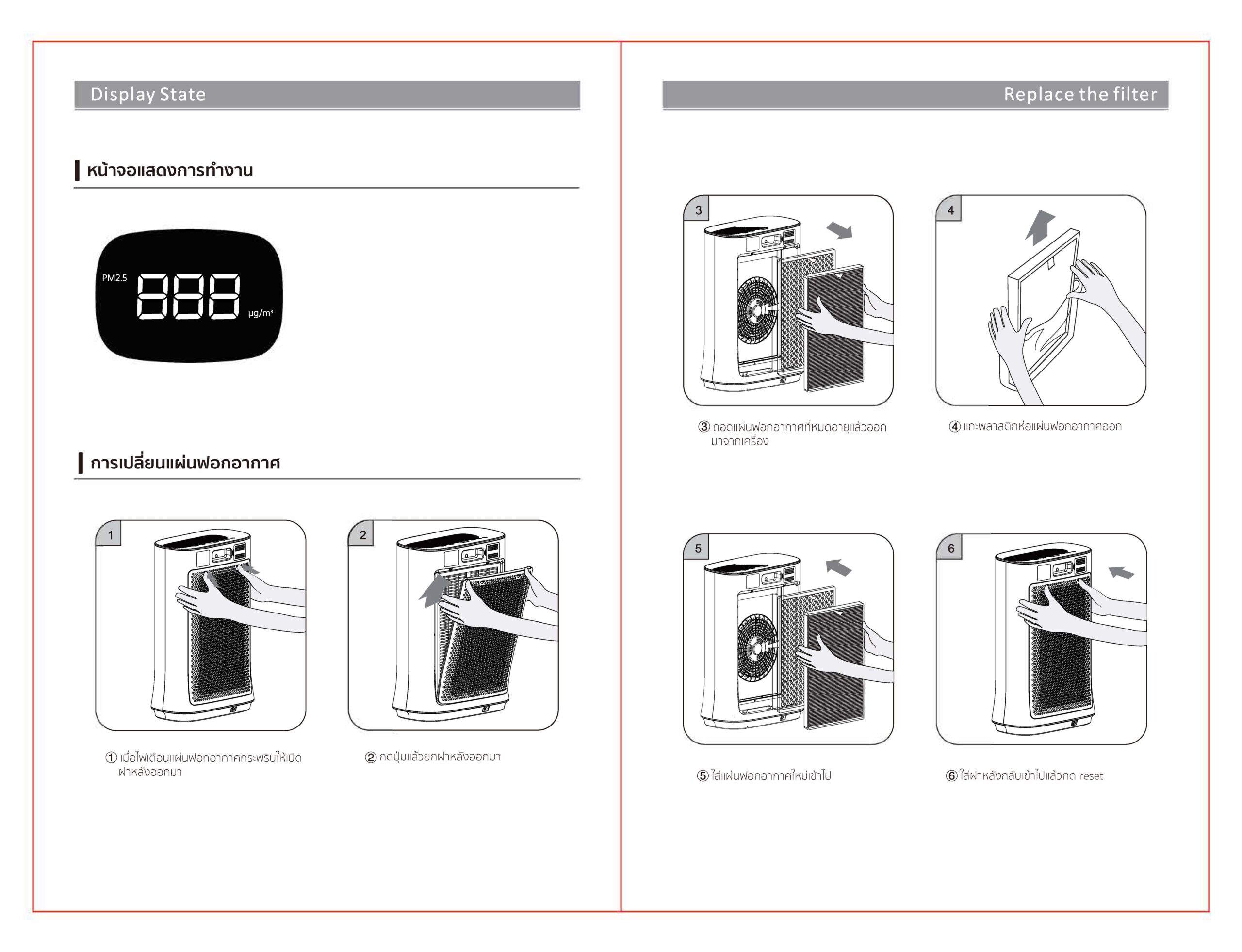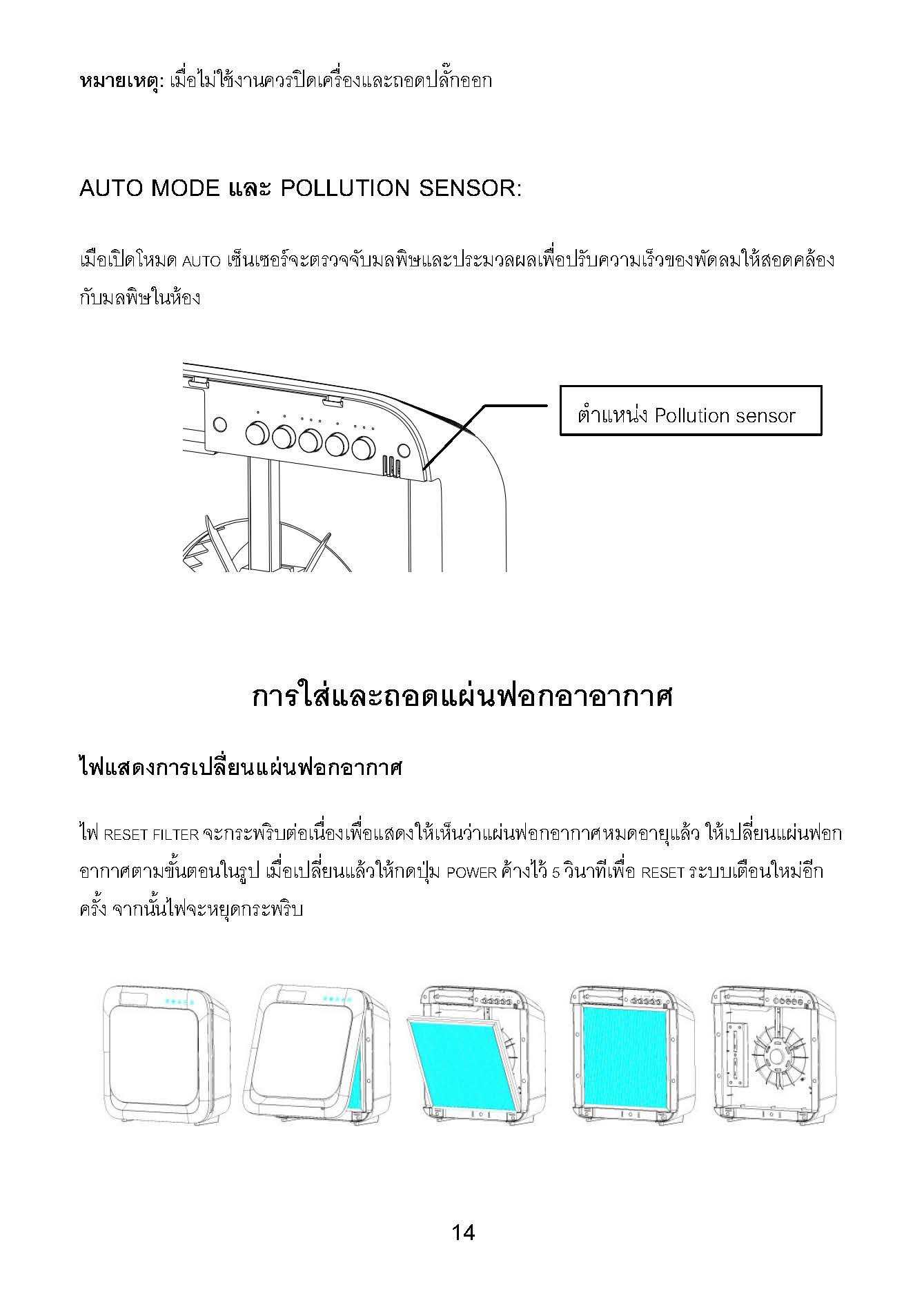 วิธีเปลี่ยนและรีเซ็ตแผ่นฟอกอากาศ รุ่น PM1330